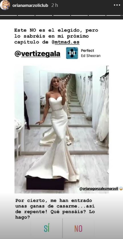 Pero lo que llamó la atención de todos fue su revelación de que tiene hartas ganas de contraer matrimonio. "Me han entrado unas ganas de casarme. Qué pensais ¿lo hago?", escribió en un post en Instagram Stories.