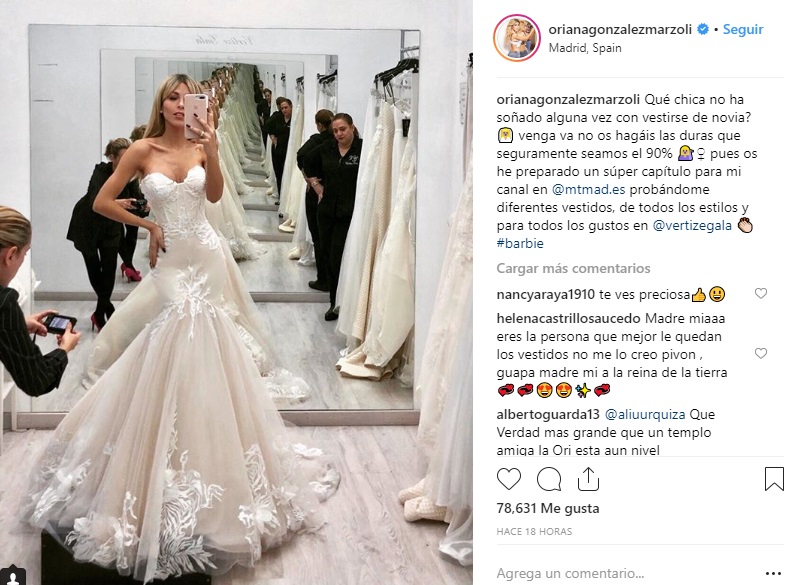 "Qué chica no ha soñado alguna vez con vestirse de novia? 👰🏼 venga va no os hagáis las duras que seguramente seamos el 90% 💁🏼♀️ pues os he preparado un súper capítulo para mi canal en @mtmad.es probándome diferentes vestidos, de todos los estilos y para todos los gustos en @vertizegala 👏🏻 #barbie", fue el comentario con el que acompañó su postal de novia.