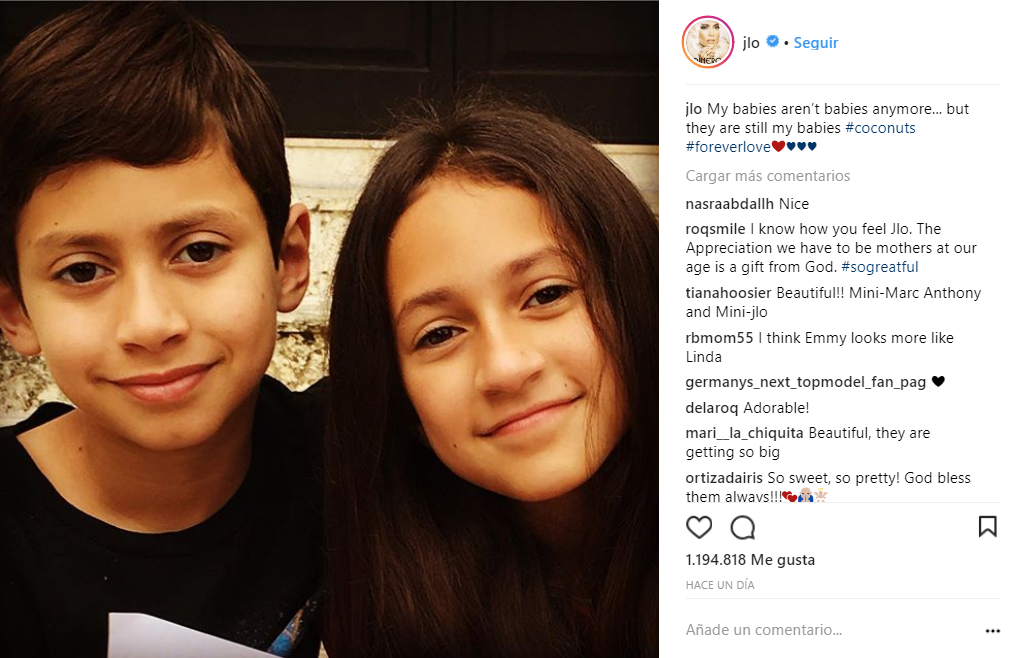 Jennifer Lopez enamoró en sus redes sociales con una nueva foto de sus hijos. Emme y Maximilian tienen 10 años y revolucionaron las redes sociales de su madre. Esto se debe al parecido a JLo y también a Marc Anthony.