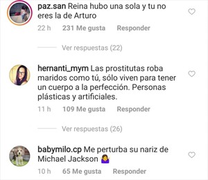 La modelo ha recibido una serie de insultos y críticas en su cuenta de Instagram de personas que la apuntan como la responsable del quiebre entre el futbolista y Matus.