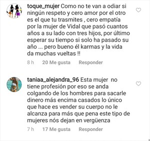 Ahora, tras finalmente mostrar públicamente su relacion, tanto Vidal como Isaza recibieron comentarios negativos, siendo esta última la que se llevó la parte más dura.