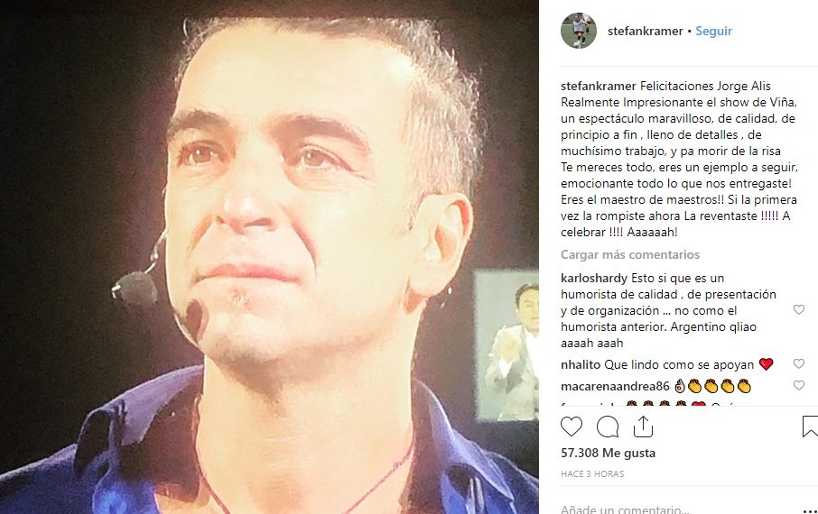 “Realmente Impresionante el show de Viña, un espectáculo maravilloso, de calidad, de principio a fin , lleno de detalles , de muchísimo trabajo, y para morir de la risa”, fue parte del mensaje que compartió el 'hombre de los mil personajes' en su cuenta de Instagram.