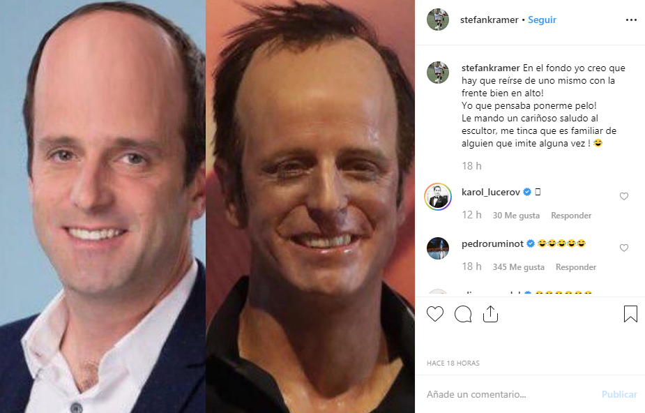 El imitador, compartió una foto a través de sus redes sociales, en donde aparece con su frente photoshopeada. "En el fondo yo creo que hay que reírse de uno mismo con la frente bien en alto!Yo que pensaba ponerme pelo! Le mando un cariñoso saludo al escultor, me tinca que es familiar de alguien que imité alguna vez", escribió Kramer.