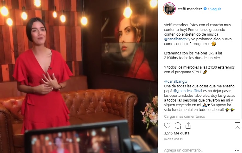 Durante la mañana del pasado lunes, Steffi Méndez compartió a través de sus redes sociales que iba camino a "su primer día laboral", donde reveló que será la nueva animadora del canal Bang TV (152 del Cable Claro TV).