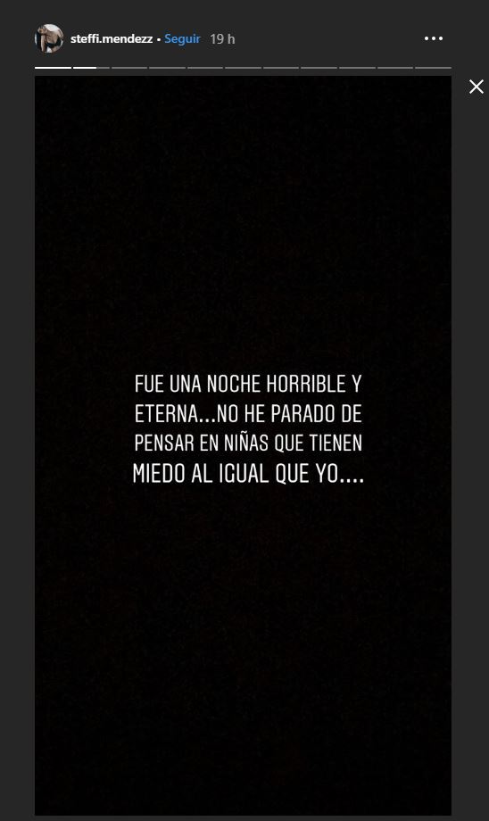 “Fue una noche horrible y eterna…no he parado de pensar en niñas que tienen miedo igual que yo”, escribió la joven junto a un pantallazo de un chat de Nido donde se refieren a ella con una amenaza. "Steffi Méndez si lees esto quiero que sepas que 'lillies123' tu sabes lo que significa", decía el mensaje.