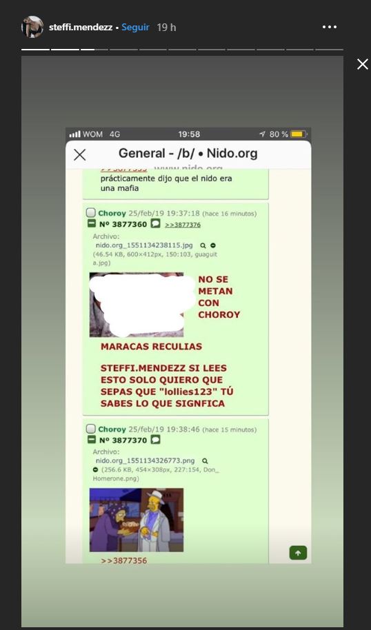 Y quien reveló que ha sido víctima de este sitio fue la hija del rapero DJ Méndez, Steffi, quien a través de sus historias de Instagram, confesó que ha recibido amenazas de usuarios de ese sitio, lo que le provocó que anoche no pudiera dormir.
