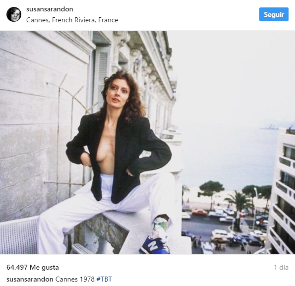 La actriz durante estos días subió a su cuenta de Instagram una foto del recuerdo, donde se le ve en el año 1978, también en Cannes. En la imagen se le ve en un balcón luciendo un sensual escote. Logró más de a 64 mil Me gusta y más de mil comentarios con piropos.
