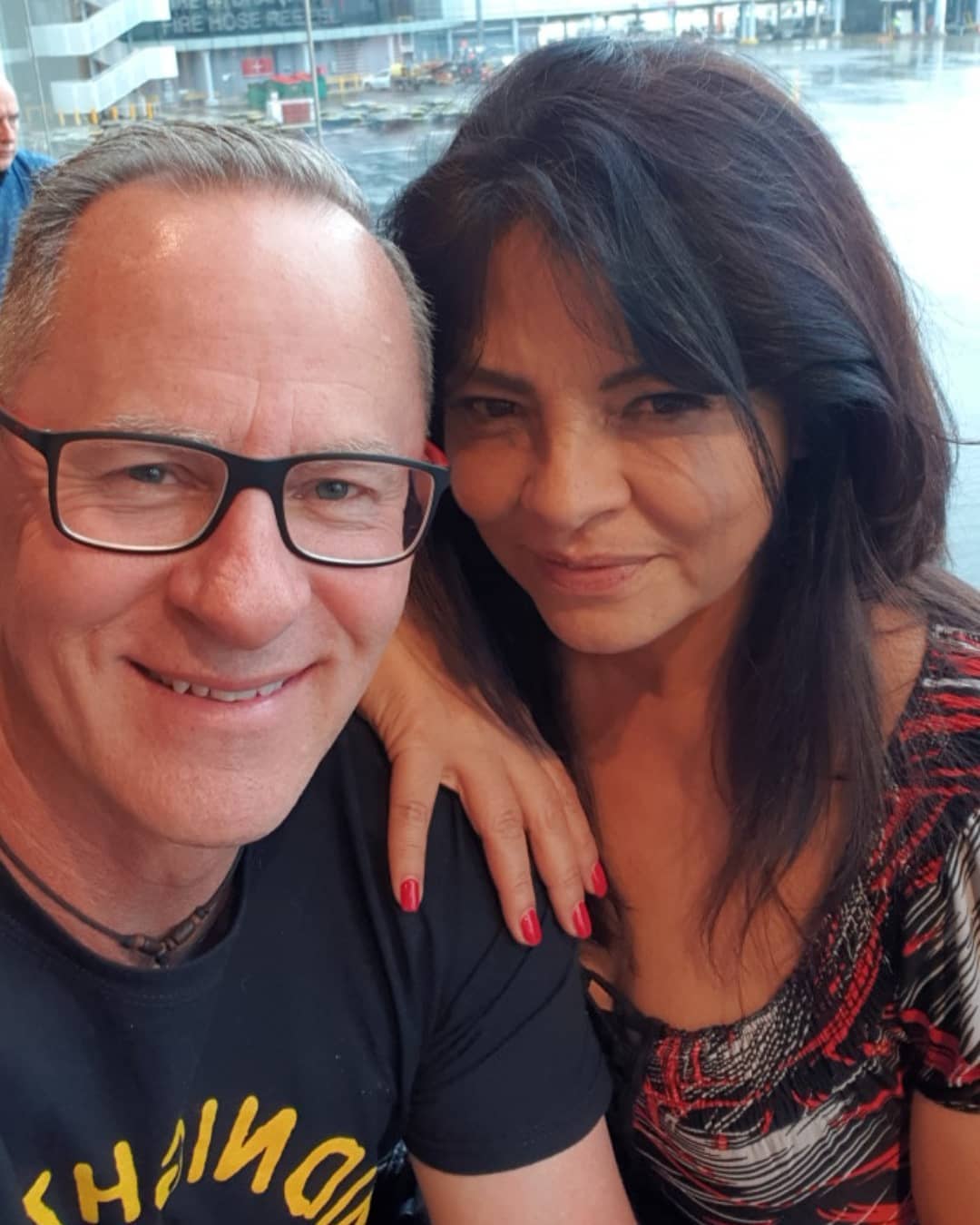 Merino, de 56 años, contó a La Cuarta que se encuentra de visita en Chile, por primera vez con su esposo. "Estábamos ansiosos por llegar a Chile. Él, este 5 de septiembre cumplió 60 años, y este viaje es por sus vacaciones, por la celebración de sus 60 y porque quería que conociera mi país, quería mostrárselo", explicó.