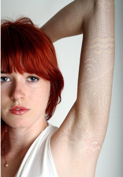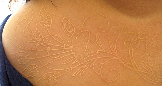 Esta vez, te mostraremos una nueva tendencia que está ganando adeptos: tatuajes con tinta blanca, este color representa la luz, la unidad y la pureza.