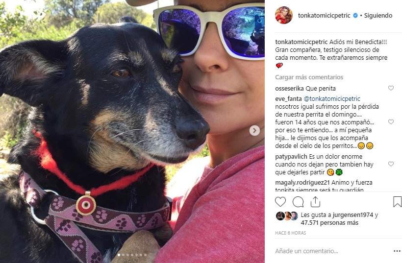 "Adiós mi Benedicta!!! Gran compañera, testigo silencioso de cada momento. Te extrañaremos siempre", escribió Tomicic, acompañando la publicación por un set de imágenes del can.