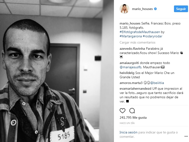 A través de su cuenta de Instagram, el actor de 31 años reveló el drástico cambio físico al que se sometió para caracterizar al fotógrafo catalán Francesc Boix en su próxima película "El fotógrafo de Mauthausen".