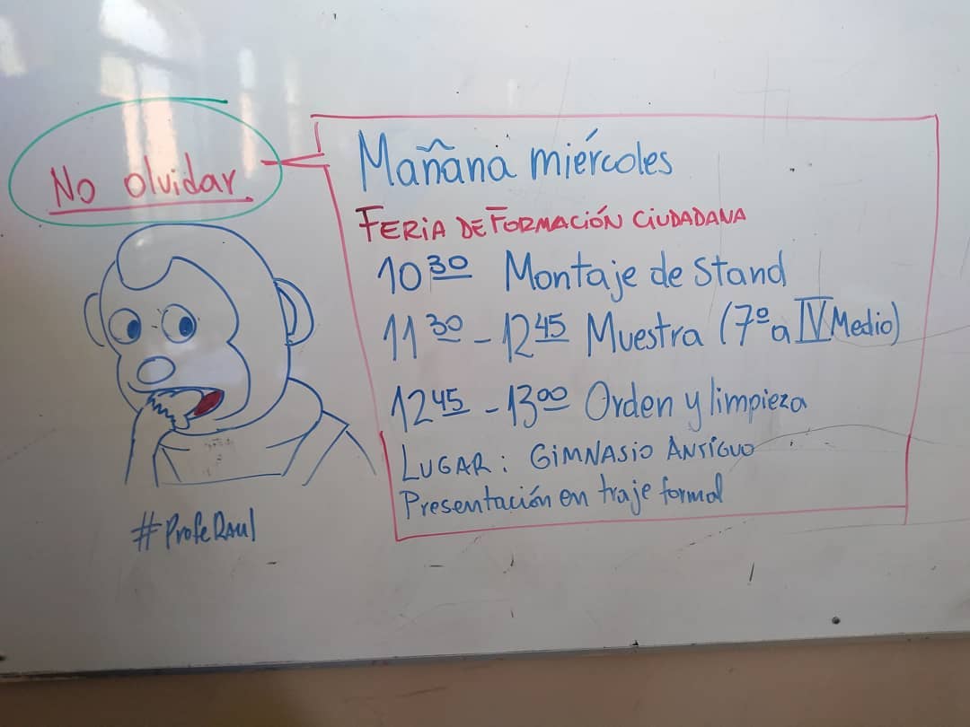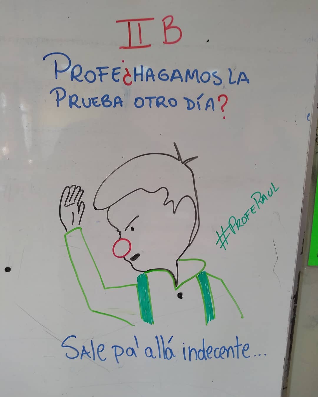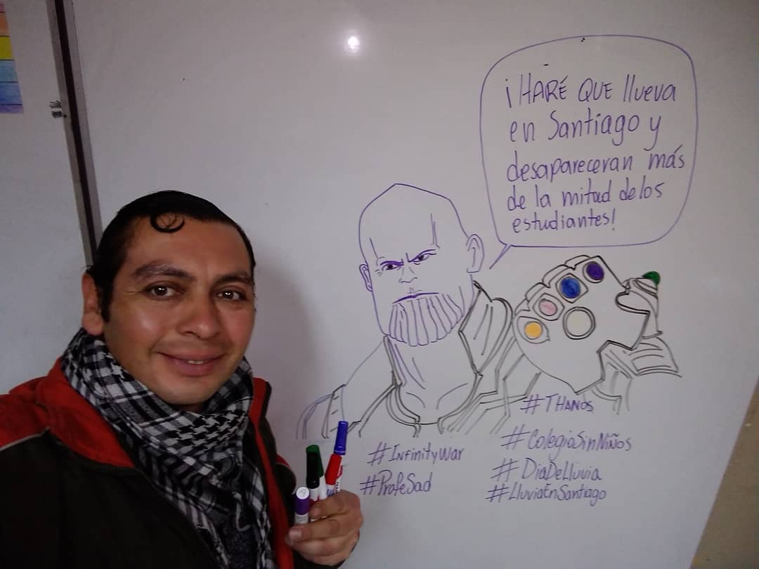 Por eso el profesor de 37 años y originario de Talcahuano que llegó el 2010 a Santiago, usa dibujos de memes en la pizarra para alivianar el contenido de sus clases a sus alumnos.