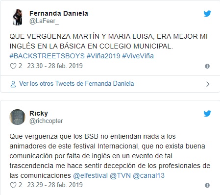 De hecho, en su intento por conversar con los músicos estadounidenses, hubo momentos en que prácticamente no se les entendió a María Luisa Godoy y Martín Cárcamo.