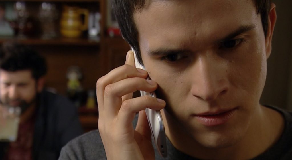 Esto fue en una escena donde aparece Samuel (Juan Carlos Maldonado) recibiendo una llamada de su profesor Matías Bennet (Claudio Arredondo), donde el joven toma su teléfono y contesta. Pero al momento de hablar se muestra que el joven sostiene su móvil al revés.