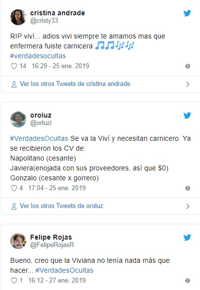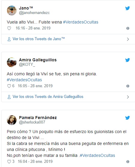 Según los telespectadores, es lo que pasará con "Vivi", interpretada por Claudia Hidalgo, pues en el último capítulo se enteró de que su hermana y cuñado habían tenido un accidente en auto, por lo que tuvo que viajar.