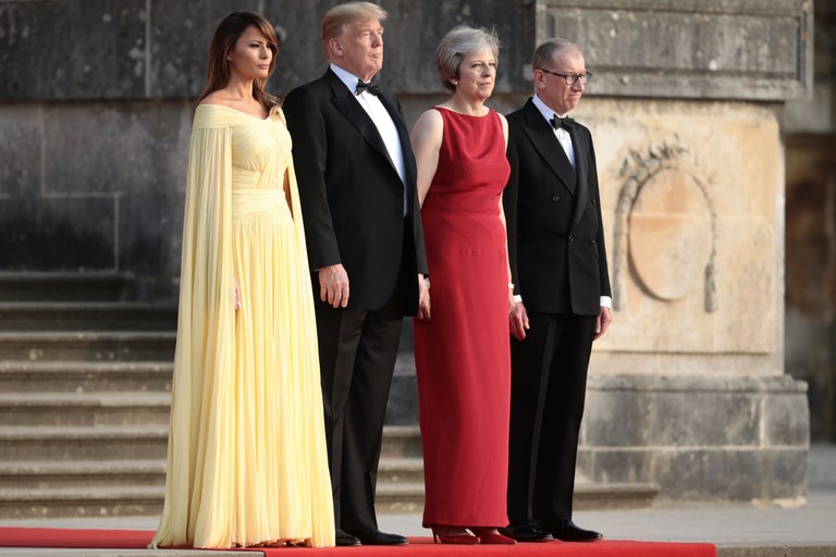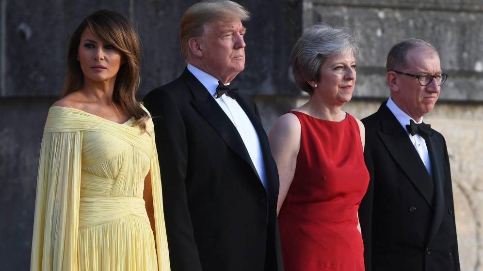 La primera dama estadounidense asistió (junto a su marido), a una cena de gala ofrecida por la primera ministra británica Theresa May en el Palacio de Blenheim.
