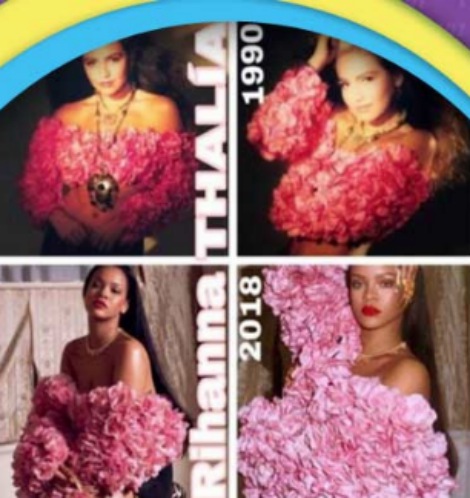 La cantante mexicana lo aseguró mediante una fotografía que subió a sus redes sociales en donde comparó un top de flores rosas off shoulders, en una parte cómo lo usó ella en los 90s y en la parte inferior, el que repitió Rihanna para sus fotos editoriales este año.