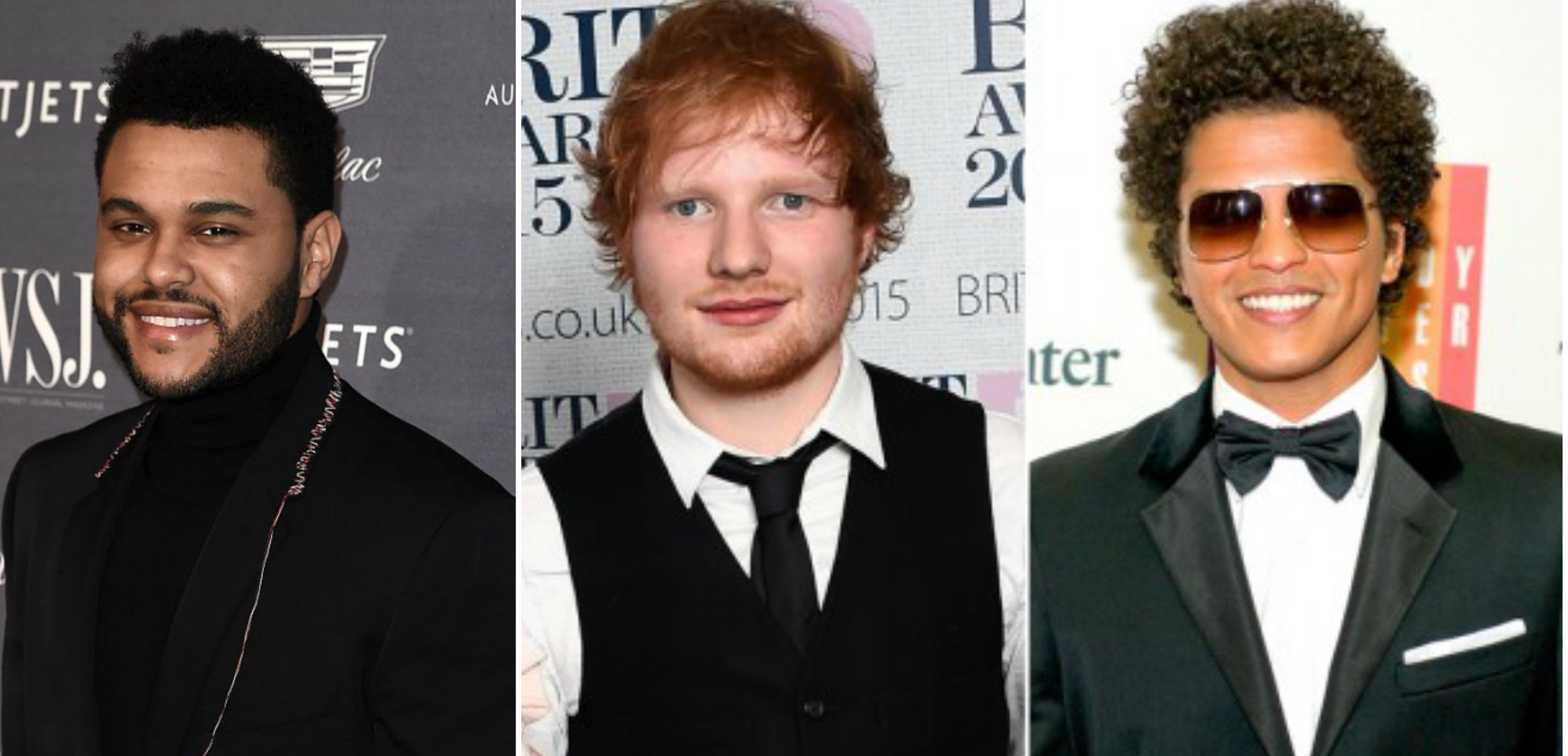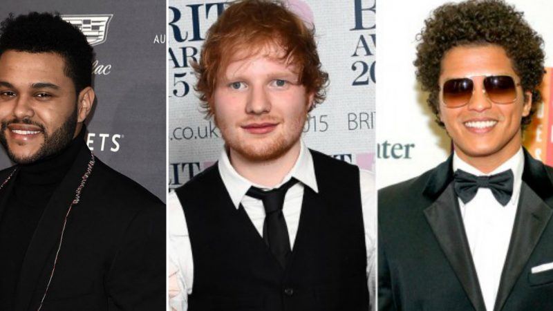 Otros artistas que figuran en la lista son Charlie Puth, The Chainsmokers, Coldplay, John Legend, Zayn y Taylor Swift.
