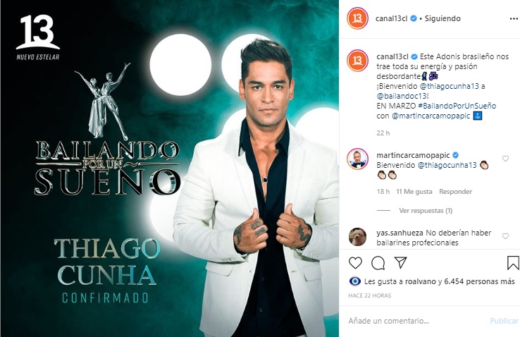 Thiago Cunha fue confirmado este fin de semana como el nuevo participante del estelar de Canal 13, 'Bailando por un sueño'.