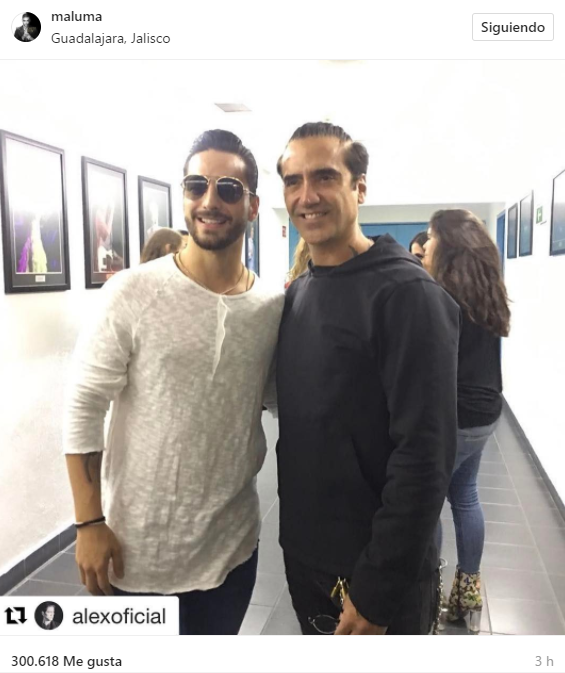 También durante su paso por México, el colombiano aprovechó de asistir al concierto del cantante Alejandro Fernández. "Bienvenido a #Jalisco #guadalajara ! Venga Hermano! Buena Noche! @maluma / Gracias por ir y acompañarme anoche en el show mi hermano, mucho respeto y admiración", escribió el azteca en su cuenta de Instagram junto a una imagen de ambos.