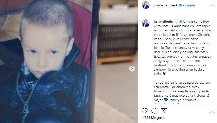 Esta fue la publicación que Julián le dedicó a su hijo: