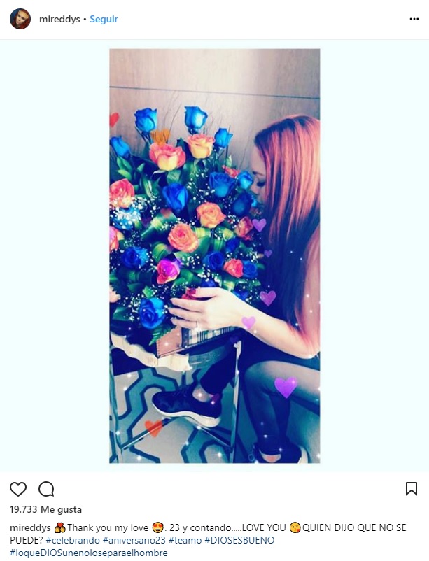 Ante la sorpresa, Mireddys no quiso quedarse atrás y también utilizó su cuenta de Instagram para agradecer el cariño durante estos años: "Thank you my love. 23 y contando. Love you, ¿quién dijo que no se puede?".