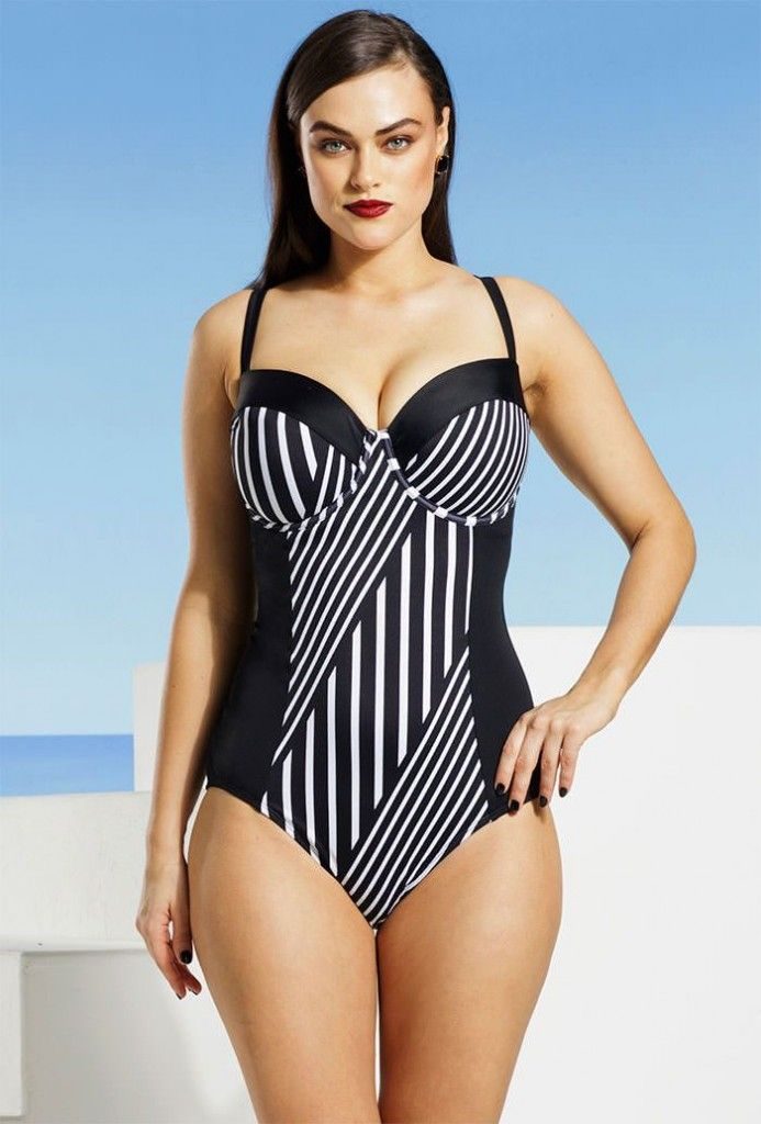 1. Forma rectangular: Este tipo de cuerpo se caracteriza por tener los hombros casi del mismo ancho que las caderas, con una cintura no tan definida. Si es tu caso, la idea es crear curvas y dar volumen con colores en la parte alta, por lo que debes buscar trajes de baño completos o bikinis que se amarren en el cuello, pues te harán lucir más esbelta. Por el contrario, si optas por strapless te verás más cuadrada. Otra opción son las líneas diagonales o bandas en los costados, que lograrán reducir el tamaño de tu cintura.