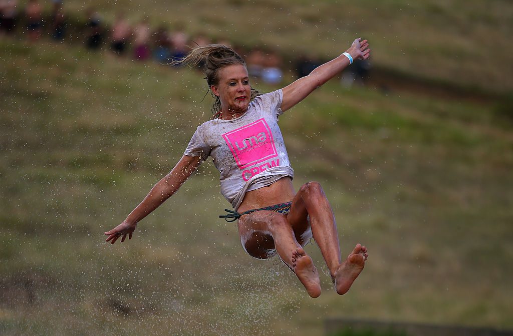 AUCKLAND, NEW ZEALAND - FEBRUARY 23: People enjoy the muddy thrills and spills on a waterslide dug into a hillside in Waimauku on February 23, 2013 in Auckland, New Zealand. Only 2000 people will have the honour of riding the water slides, with one measuring 650 meters long built by New Zealanders Jimi Hunt and Dan Drupstee, of the "Live more Awesome" charity this weekend. The world's longest slide will be open for only two days to raise funds and awareness of depression. (Photo by Phil Walter/Getty Images)