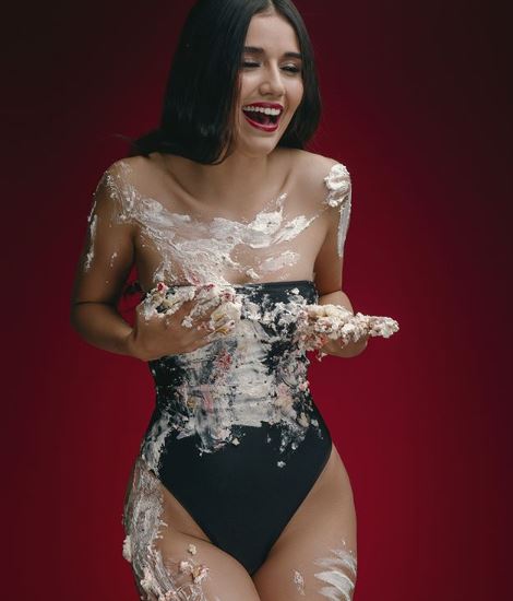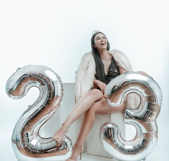 La hija de Dj Méndez sorprendió en sus redes sociales con una divertida sesión de fotográfica dedicada a su natalicio donde se dejó ver con dos body negros, embarrada de pastel y con unos globos con un número 23 en grande.