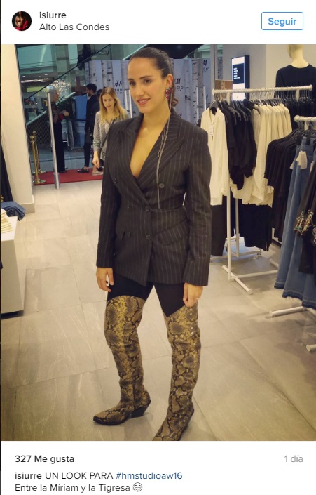 Entre los invitados estuvo la actriz Isidora Urrejola, quien fue el blanco de las críticas por la tenida que escogió: un blazer cruzado oscuro y unas botas tipo bucaneras de serpiente, que eran parte de las nuevas prendas de la marca.