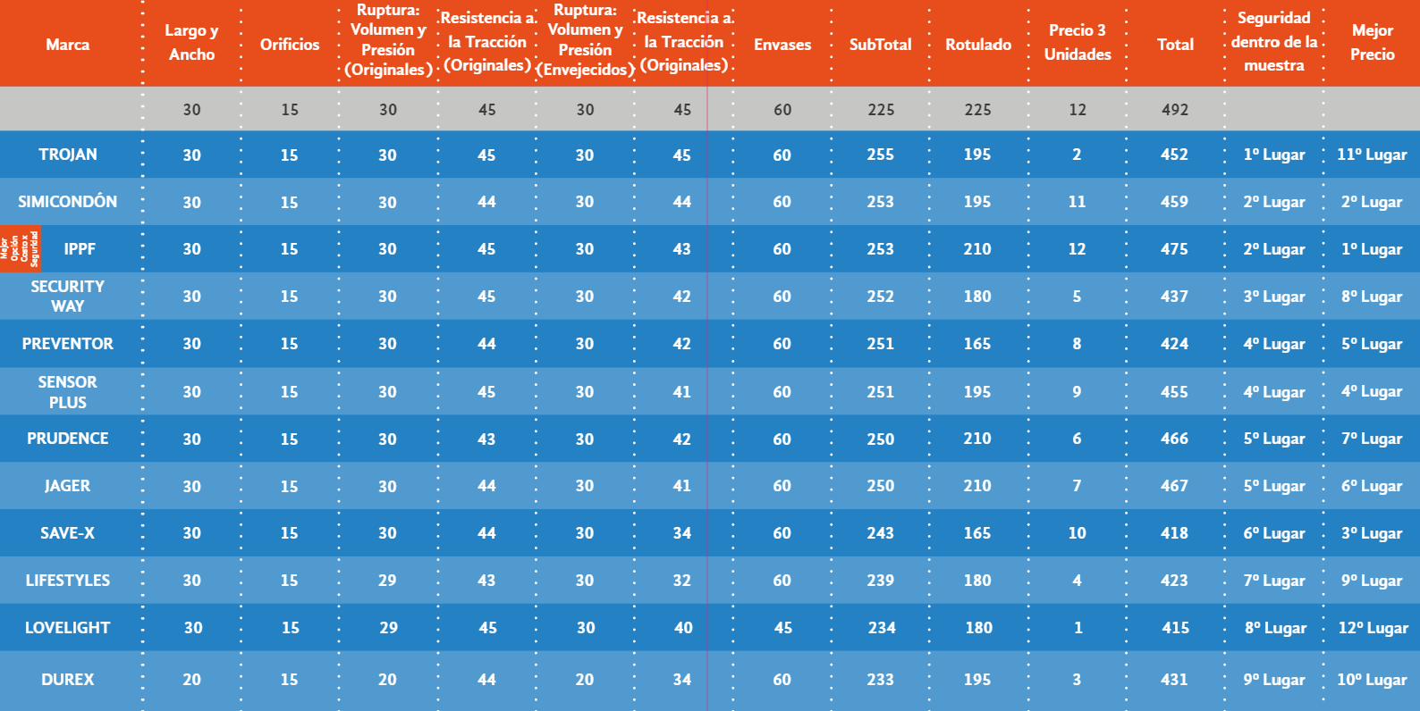 Las marcas analizadas fueron: Durex, Jager, Lifestyle, Lovelight, Preventor, Prudence, Save X, Security Way, Sensur Plus, Simicondón, Trojan e IPPF.