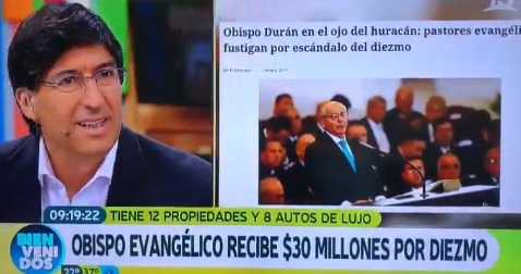 Durante la mañana de este martes, el matinal "Bievenidos" habló sobre la polémica que enfrenta la Iglesia Evangélica sobre el insólito diezmo que recibe el obispo Eduardo Durán.