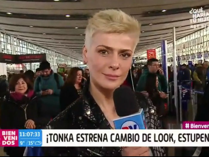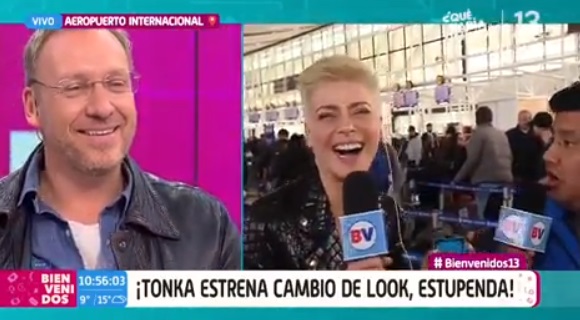 La conductora del matinal de Canal 13 "Bienvenidos", Tonka Tomicic, sorprendió en su despacho desde el aeropuerto de Santiago, no por el móvil, sino que por su renovada cabellera.