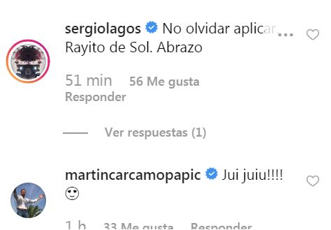 Y en apenas 3 horas, la sexy postal acumula más de 45 mil "Me gusta" y también habían comentarios de sus compañeros como Sergio Lagos, Martín Cárcamo y su amigo y ex compañero, Pedro Engel.