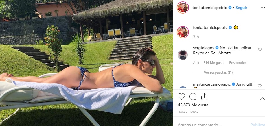 Pero una postal llamó la atención de sus fanáticos y también de sus colegas y cercanosa. En la foto aparece Tonka tomando sol en un bikini azul, mostrando su tonificada figura.