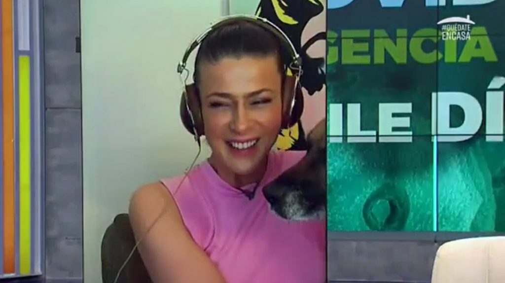 Mientras su compañero en el estudio, Amaro Gómez-Pablos, terminaba de hacer una mención comercial, apareció la cámara Tonka al aire, donde se ve que trataba de correr a su perrita Gaviota de la imagen, quien estaba encima de ella.