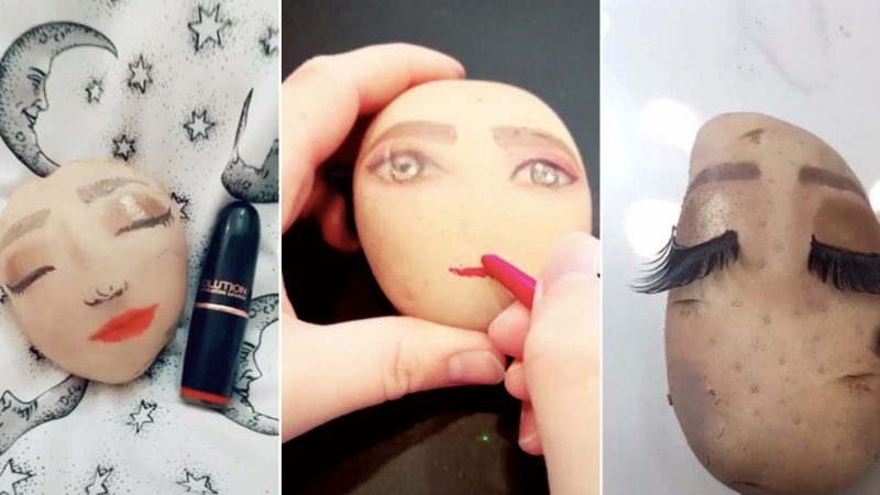Se trata de una técnica en la que se dejan de lado los rostros, para recrear tutoriales de belleza nada menos que sobre una papa.