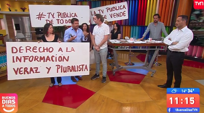 "Hoy en la mañana personas externas al canal, acompañadas de un dirigente sindical de TVN, entraron al estudio del Buenos Días a Todos, para expresar su posición respecto del rol de la televisión pública", partía diciendo.