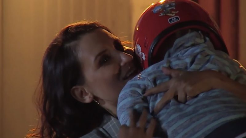 “¿Dónde estaban? No me gusta que salgan”, le dice la mujer con preocupación, verificando que el pequeño se encuentra bien. Tras sacarlo del asiento de seguridad, le pregunta "¿Cómo te portaste con el papá”, sin recibir respuesta.