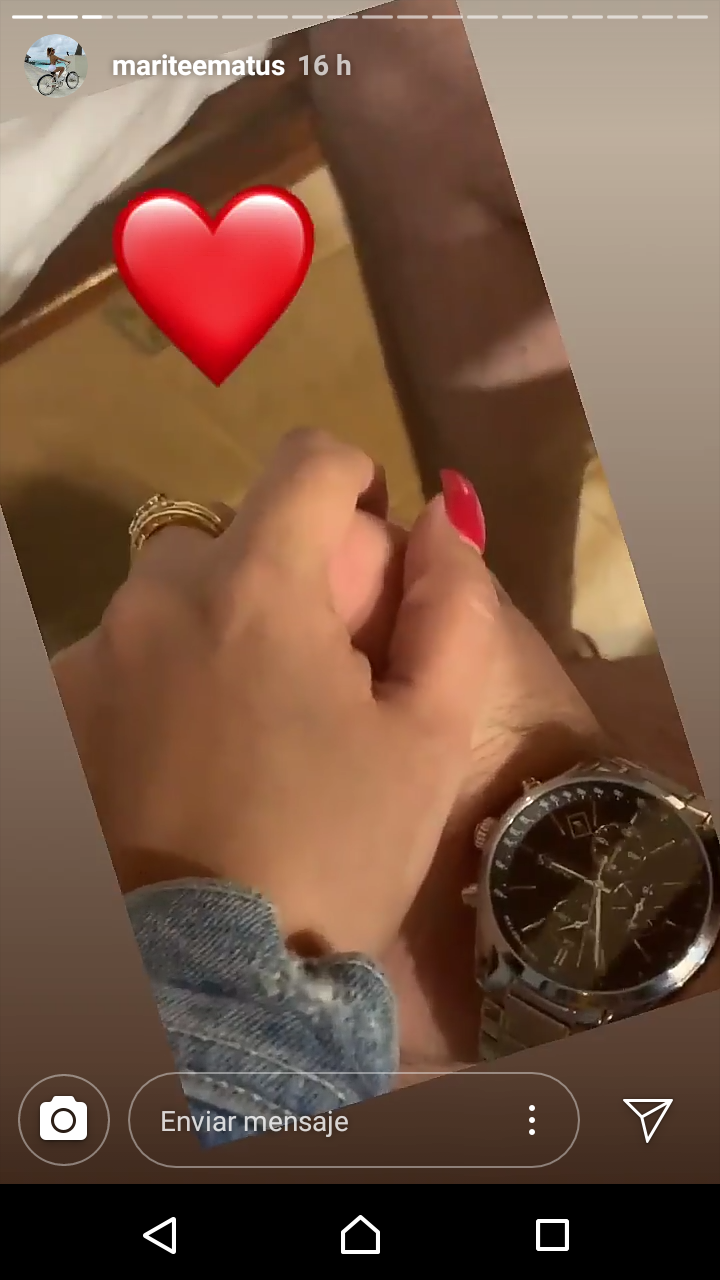 Nada menos que la imagen de su mano estrechada a la de un hombre, junto a un emoji de corazón.