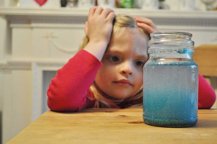 Se trata de un simple frasco de plástico que es llenado con agua, pegamento y purpurina. Cuando tu hijo sea atacado por un momento de pena, llanto, estrés o rabia, simplemente puedes pasarle el frasco de la calma para que lo agite y se distraiga con la belleza de sus brillos y sus formas por un rato. Poco a poco, verás cómo el pequeño comienza a calmarse, enfocando su atención en el frasco. Puedes ayudarlo hablándole de forma calmada y con mucho cariño. Aconséjale que respire profundo y tranquilo.