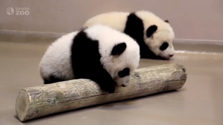 Tiene solo 4 meses de vida, y ya todos están pendientes de ellos. Se trata de un par de crías de osos pandas gigantes bebes, que están aprendiendo a caminar.