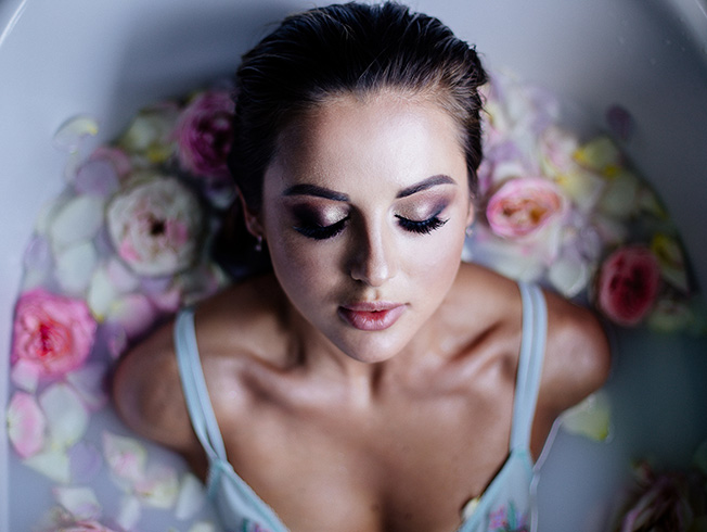 Un estilo cuya inspiración es un tradicional tratamiento de belleza y relajación, que consiste en bañarse en una mezcla de agua y leche con flores secas en suspensión.