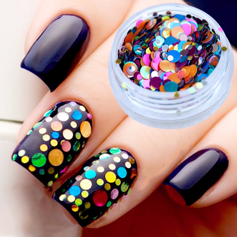 -La primera opción es cubrir por completo la superficie de la uña con lentejuelas de un mismo color.