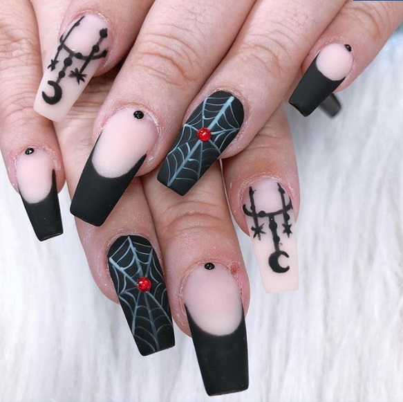 Y para este fin, qué mejor que vestir las uñas con una manicure tan elegante como terrorífica.