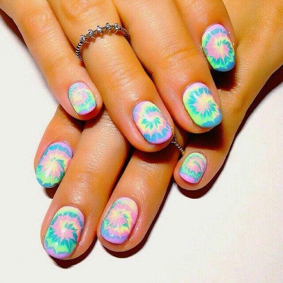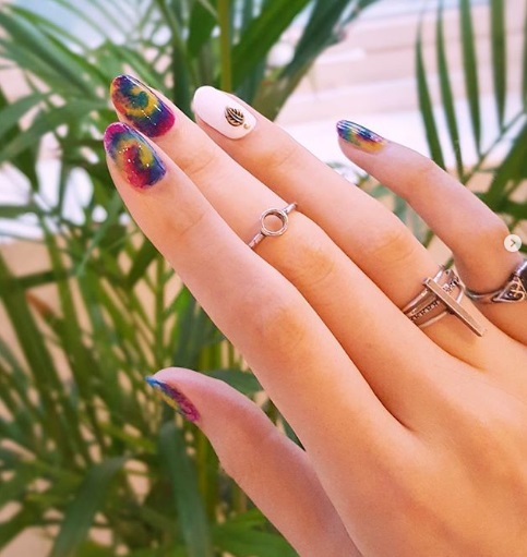El efecto es posible llevarlo sobre todas las uñas, o bien, combinando algunas lisas y otras con tie-dye.