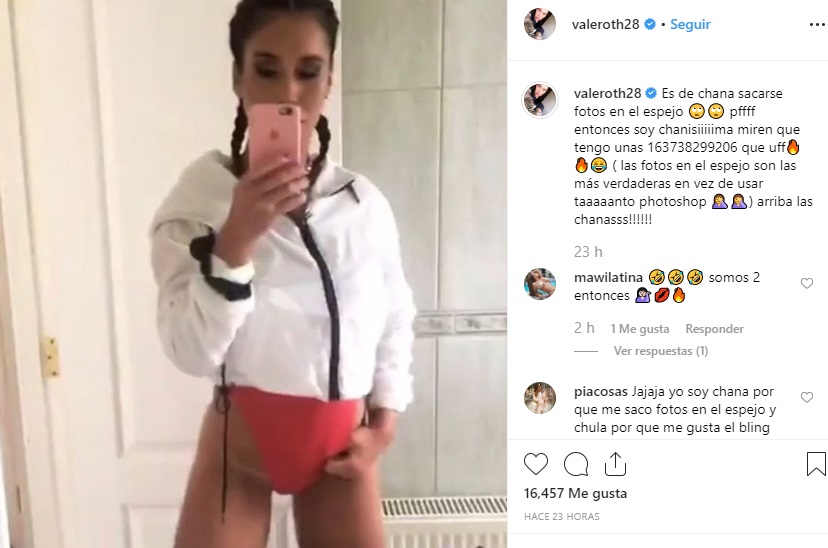 Y ahora volvió a hacer noticia por su última publicación. Posando frente a un espejo, con poca ropa, la ex gimnasta escribió: "Es de chana sacarse fotos en el espejo pffff, entonces soy chanísiiiiima. Miren que tengo unas 163738299206 que uff (las fotos en el espejo son las más verdaderas, en vez de usar taaaaanto photoshop ) ¡¡Arriba las chanasss!!".