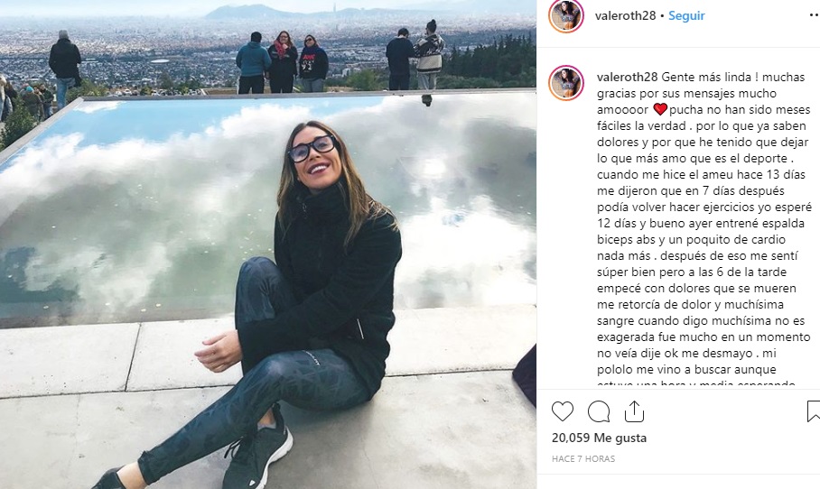 Valentina contó que estaba sola en su departamento y asustada, por lo que llamó a su pololo para ir al hospital. "Tenía miedo que me quedaran restos del feto y me tuvieran que hacer otro AMEU. Gracias a Dios no tenía restos, solo que aún me quedan muchos coágulos en el útero que no los había eliminado durante estos días (solo manchaba súper poquitito), me pusieron un medicamento que corta el sangrado y ahora tengo que tomar fierro y vitaminas", relató la bailarina.
