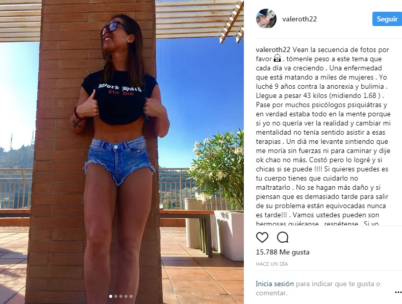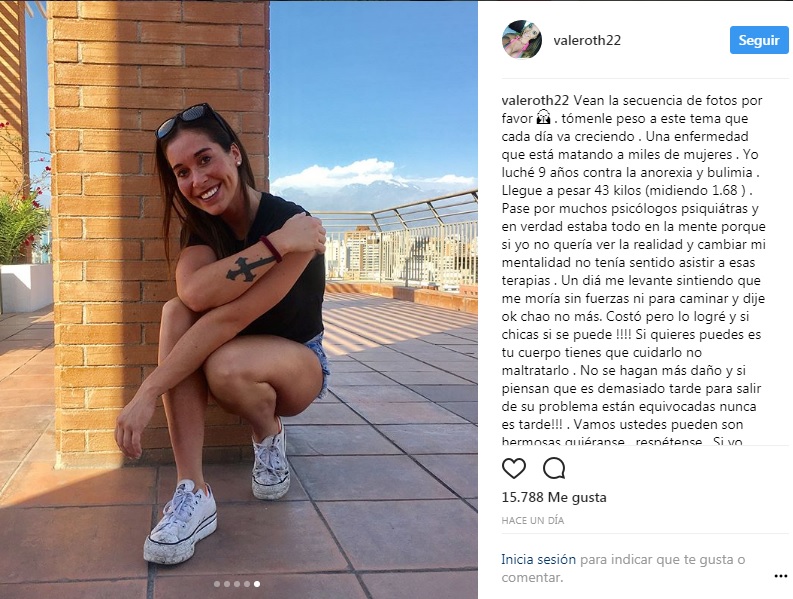 A través de sus redes sociales, la bailarina y ex figura de televisión, Valentina Roth quiso compartir su propia historia y su dura lucha contra la bulimia y la anorexia y con la que ha batallado durante años.