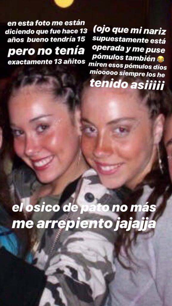 "Ojo que mi nariz supuestamente está operada y me puse pómulos también",escribió en la imagen, agregando que: "¡Siempre los he tenido así!! El hocico de pato no más me arrepiento jajaja".